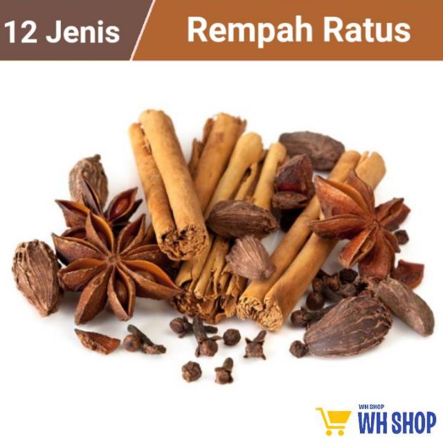 Bahan Rempah Dikisar lumat 1 sudu makan ketumbar 1 sudu teh jintan manis ½ sudu teh jintan putih Lada hitam secukupnya 8 biji bunga cengkih 12 biji cili kering 3 kuntum bunga lawang 1cm kulit kayu manis 25cm kunyit 25cm halia merah. Jenis rempah ratus ini mempunyai aroma yang harum walaupun belum dimasak. Rempah ratus biasa dirujuk sebagai sayur-sayuran yang dihasilkan dari bahagian lain tumbuhan yang biasanya dikeringkan untuk digunakan dalam masakan.