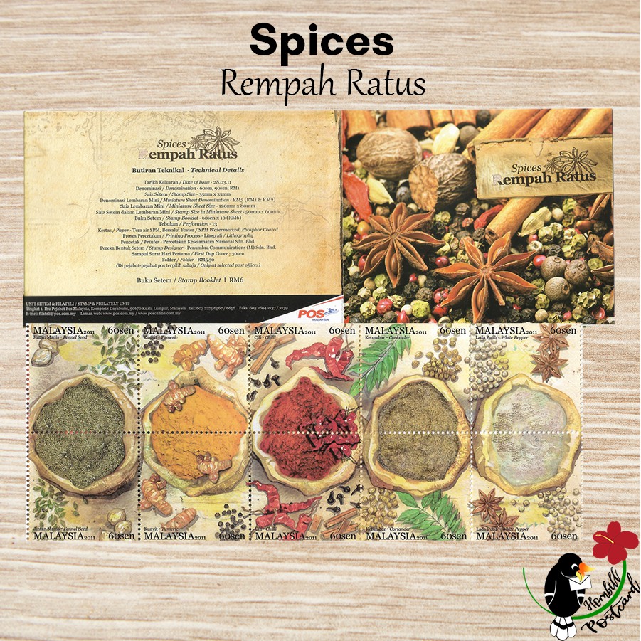 Do you want to buy Stamp Malaysia Spices Rempah Ratus 1 Set for RM6 from the genuine or want to buy it from a distributor and agent for only RM6. Rempah-rempah adalah bagian tumbuhan yang beraroma atau berasa kuat yang digunakan dalam jumlah kecil di makanan sebagai pengawet atau perisa dalam masakan. 50 sen Setem.